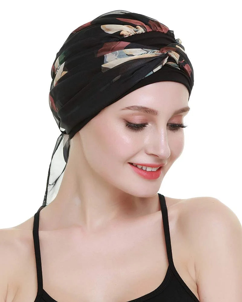 - Comfortable, soft, pre-tied, easy to wear, fashion chemo hat turban head scarves