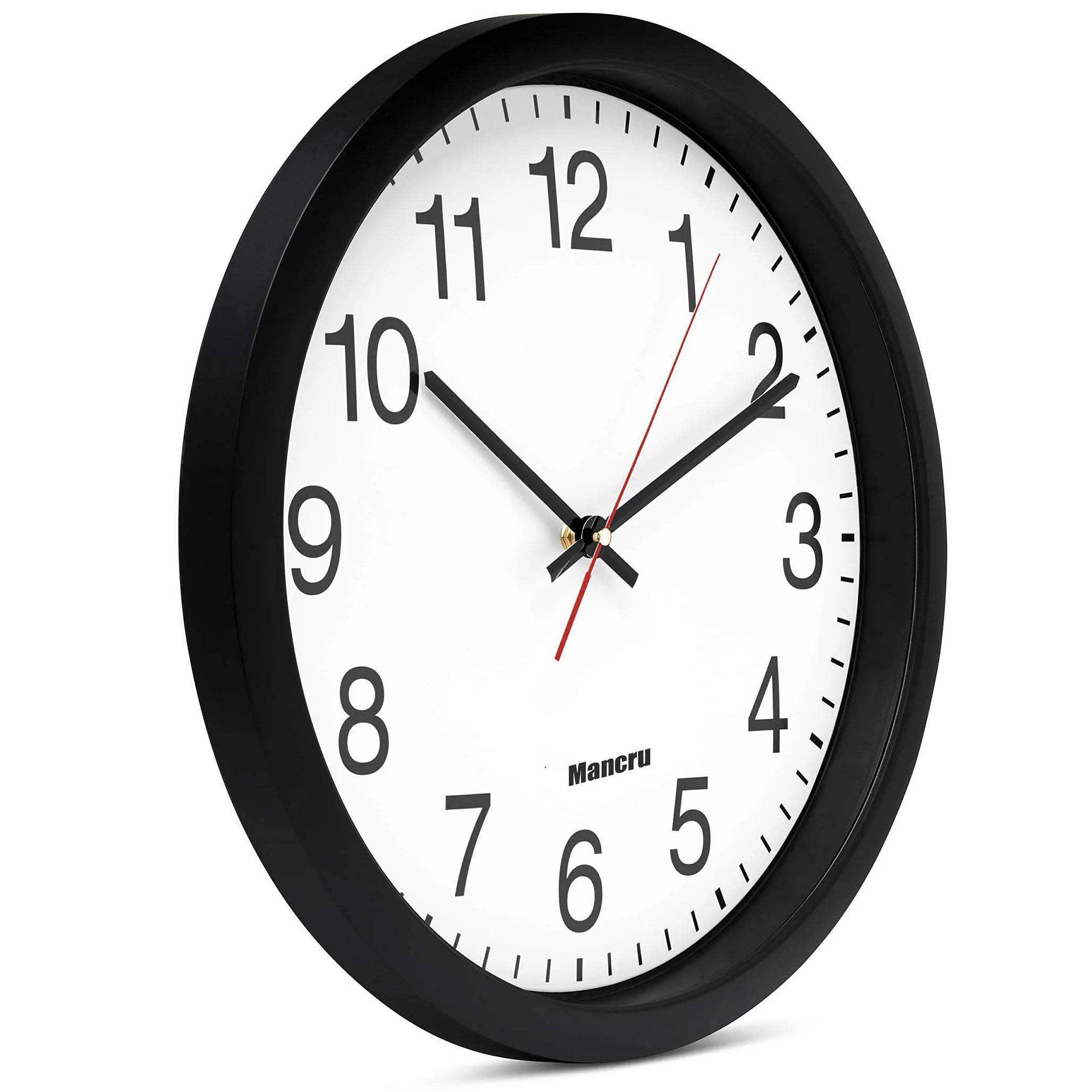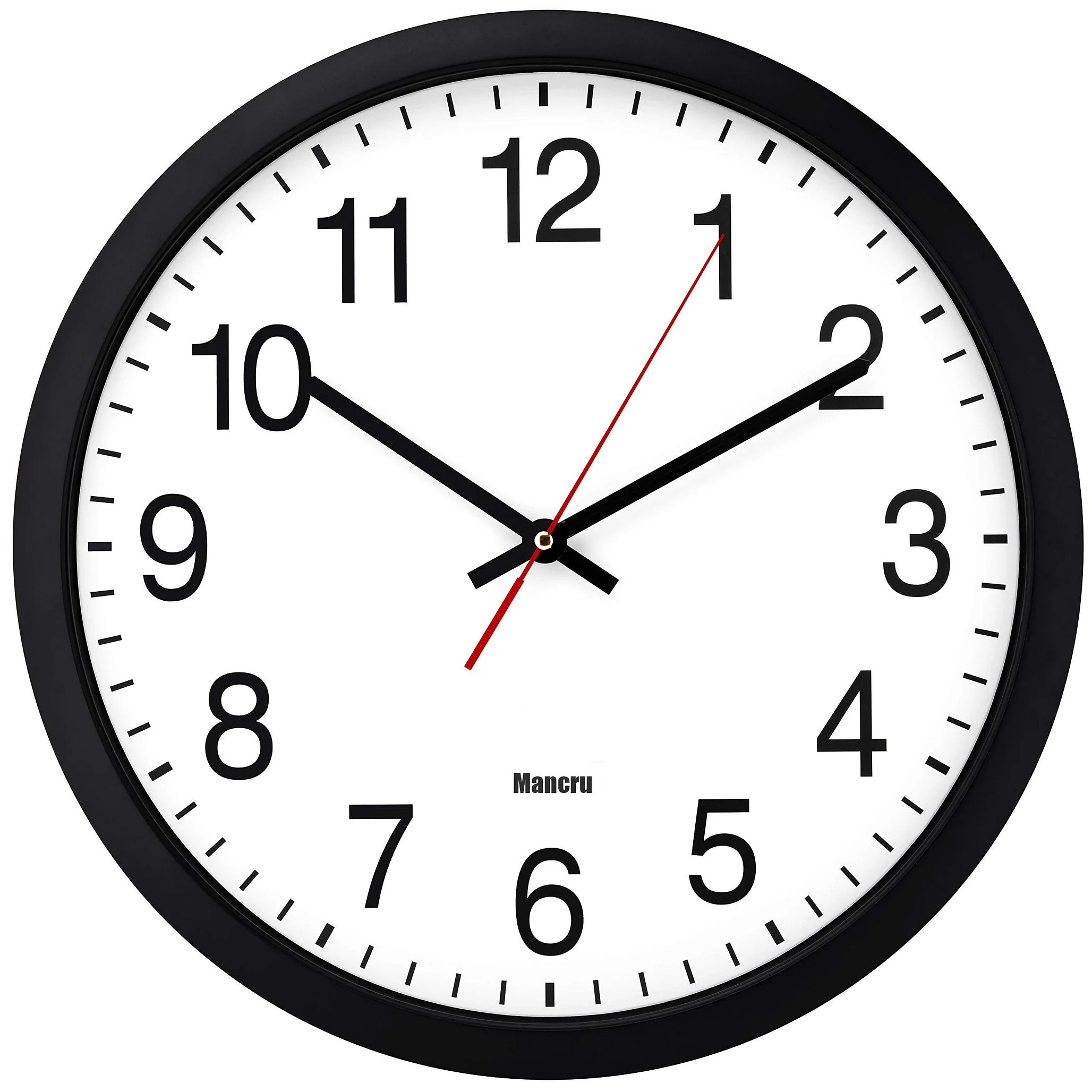 - 10-inch clock. Large black bold numbers against a white face background creates easy viewing. Precise Quartz movements guarantee accurate time