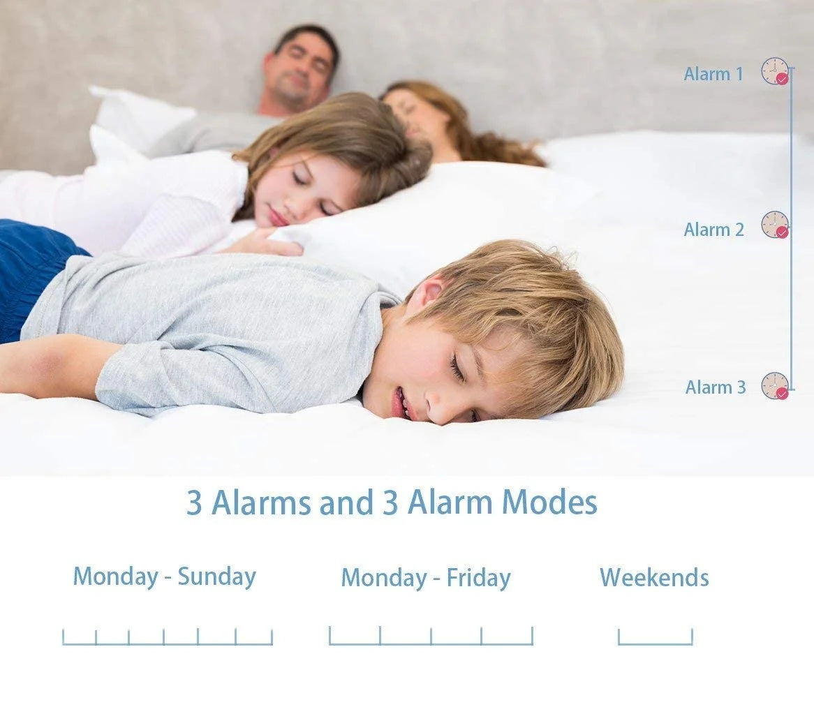 - 3 OPTIONAL ALARM -If you and your partner get up at different hours,3 alarms are a worthy extra feature. With 3 alarms, you can set one alarm clock with 3 different wake-up times and adjust the volume level to your liking.